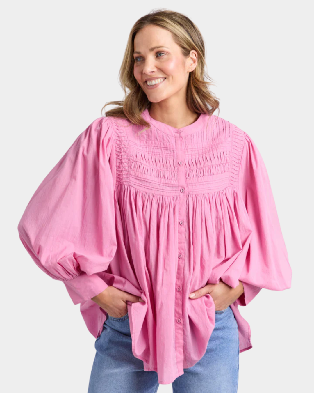 Pretty as a picture and designed as part of the exclusive Madeleine Stamer range, the Montana Blouse features glorious pin-tuck detail on this relaxed-fitting blouse. Wear it with your favourite jeans for a fresh and colourful look.