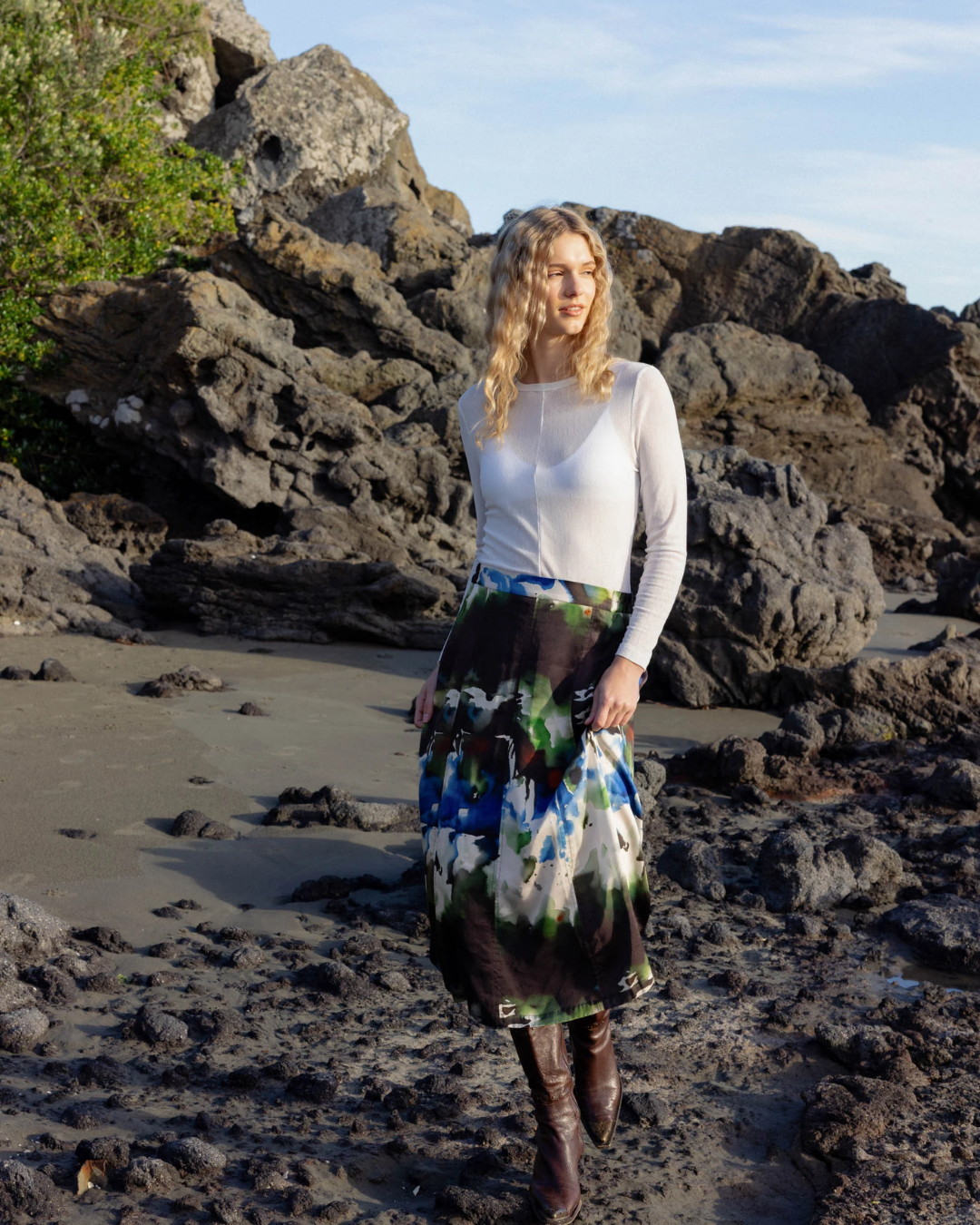 Designed with a high crew neckline, long sleeves, and centre front and back seams, it adds subtle structure to any outfit. Wear it under blazers, pinafores, or dressier tops—or pair it with dress pants and skirts for an elevated everyday look.