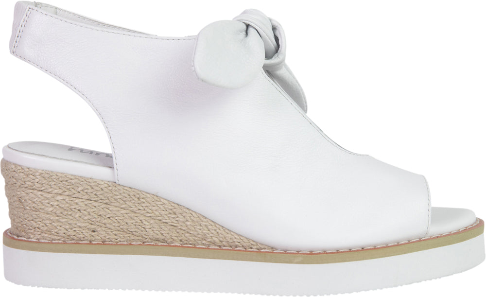 The Mossman wedge from Hinako will lift any outfit! Designed with an inside zip for easy slip-on, they also feature a feminine leather bow on the front and elastic around the ankle to help keep you supported. The Mossman shoe features a padded insole and a lightweight wedge heel with an espadrille wrap.