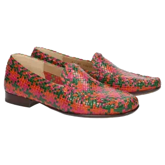 Women's slip-ons made from soft, braided goatskin with a small border on the edge of the shaft and on the tongue. Unlined women's shoe for optimal barefoot wear. Special feature: the shaft is weaved by hand directly on the last in order to obtain an optimal shape. Softly padded calfskin insole. Soft, fine rubber sole with a slight heel lift.